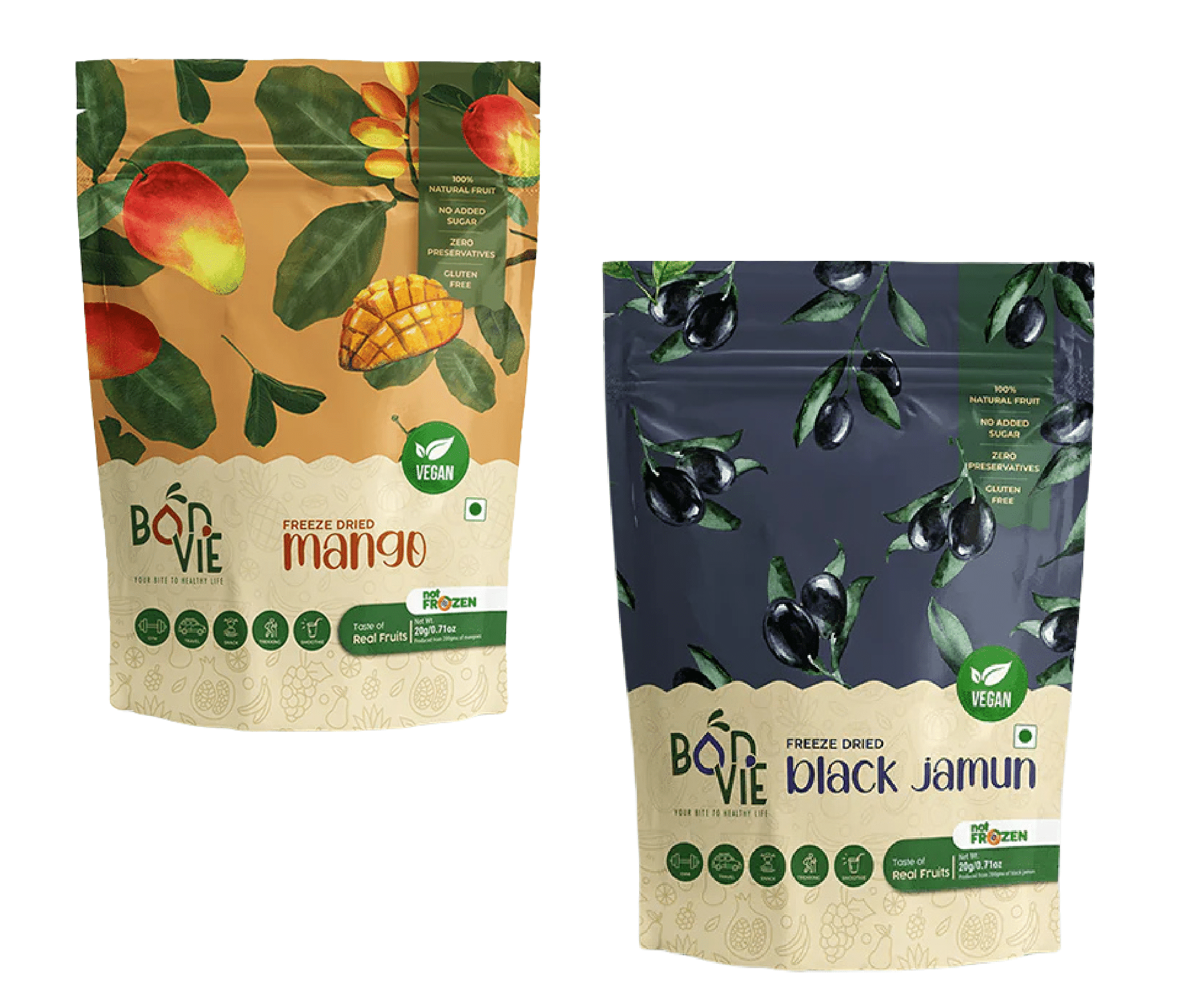 Enjoy the tropical sweetness of mango and the tangy crunch of jamun all year round with Bonvie Freeze-Dried Mango & Jamun. Made from 100% real fruits, these snacks are rich in Vitamin C, Fibre, and antioxidants—great for eye health, heart wellness, and boosting immunity. Lightweight and nutritious, they’re perfect for guilt-free, on-the-go snacking.