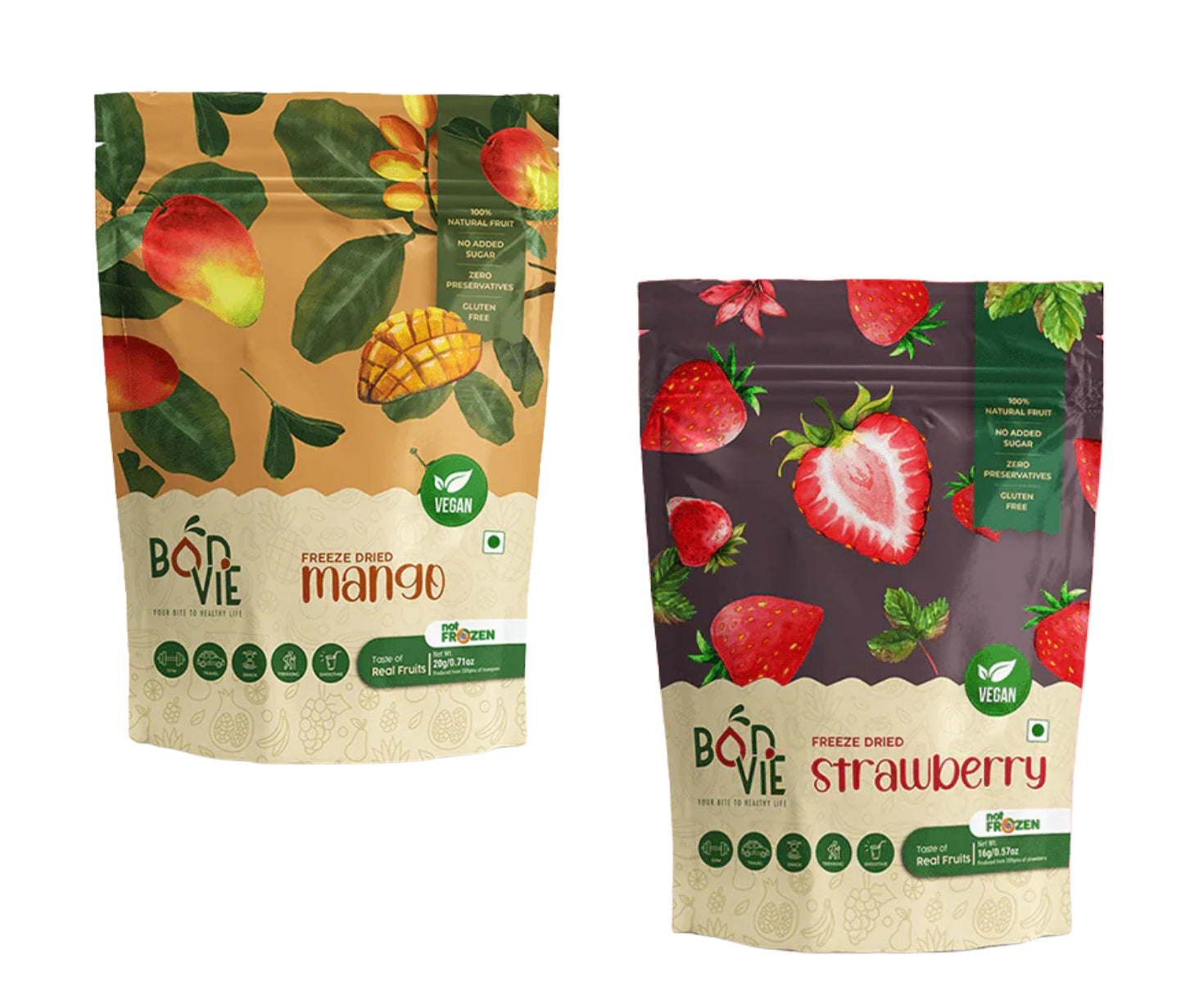 Bonvie Freeze Dried Mango & StrawberryDelight in the vibrant flavours of juicy mango and sweet strawberry—freeze-dried to lock in natural taste, crunch, and nutrients. Rich...